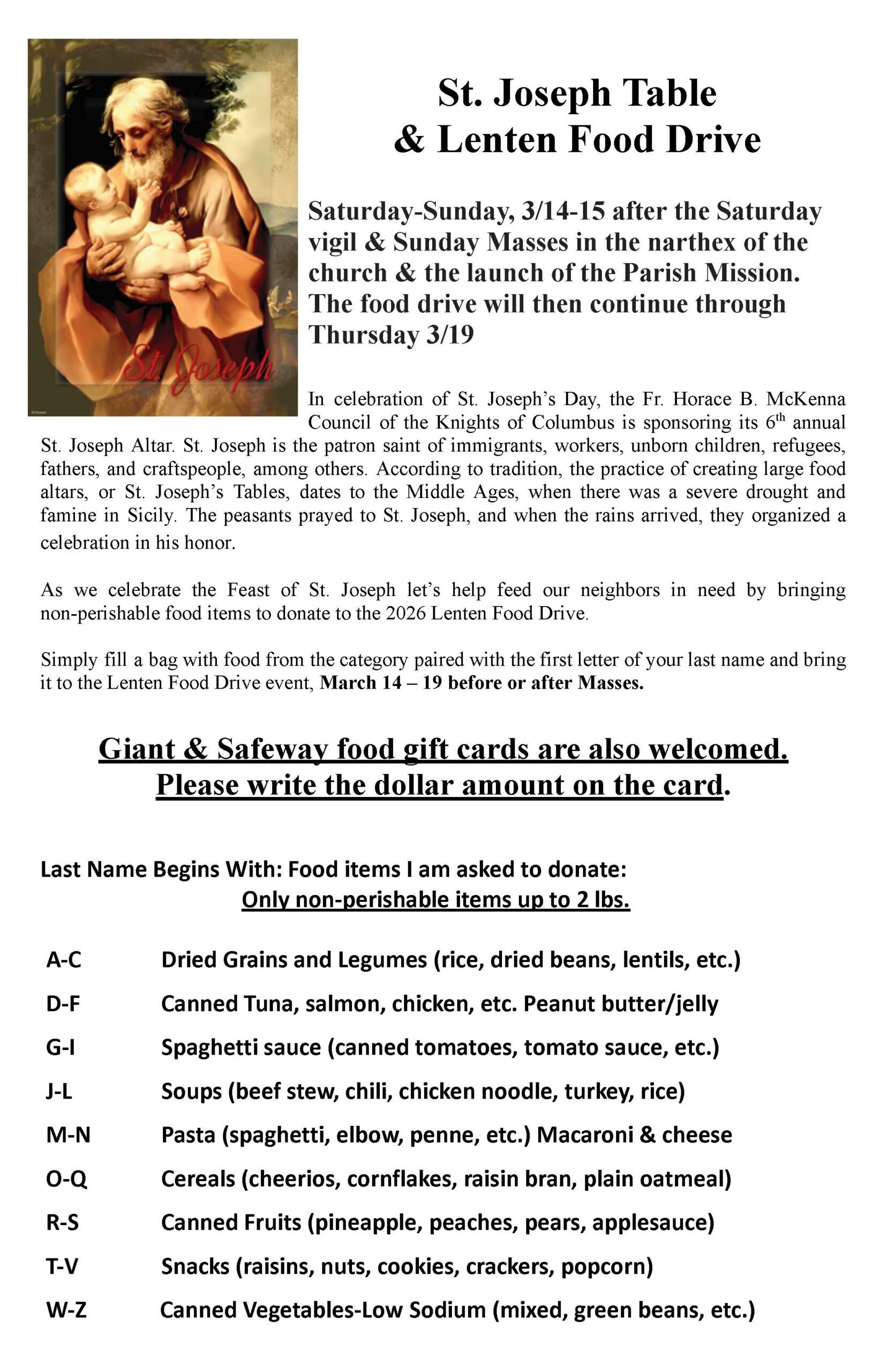 St. Joseph Table & Lenten Food Drive